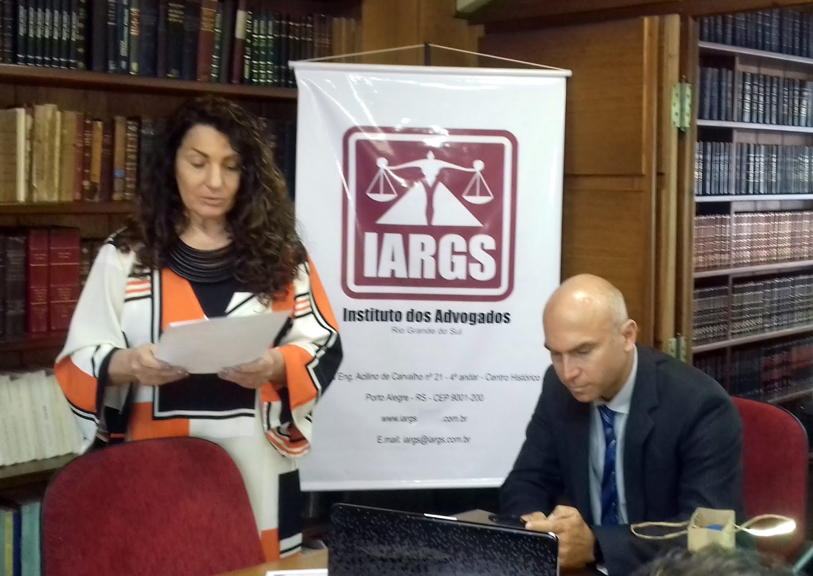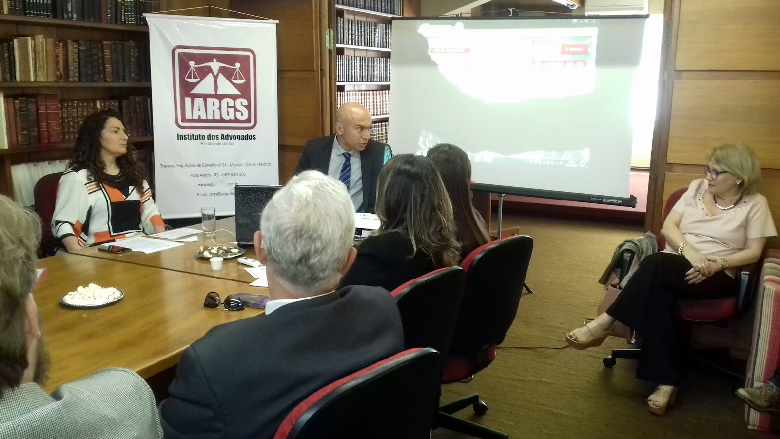 O Promotor de Justiça do Fórum da Tristeza, Dr Tiago de Menezes Conceição, foi o convidado para palestrar no Grupo de Estudos de Direito de Família do IARGS sobre “Temas polêmicos em processos de Direito de Família”, hoje, dia 23/10, no quarto andar do instituto. A anfitriã foi a diretora-adjunta do Grupo de Estudos de Direito de Família, Dra Liane Bestetti. O Dr Tiago promoveu um debate entre o público presente abordando sete temas citando como exemplo alguns casos julgados.