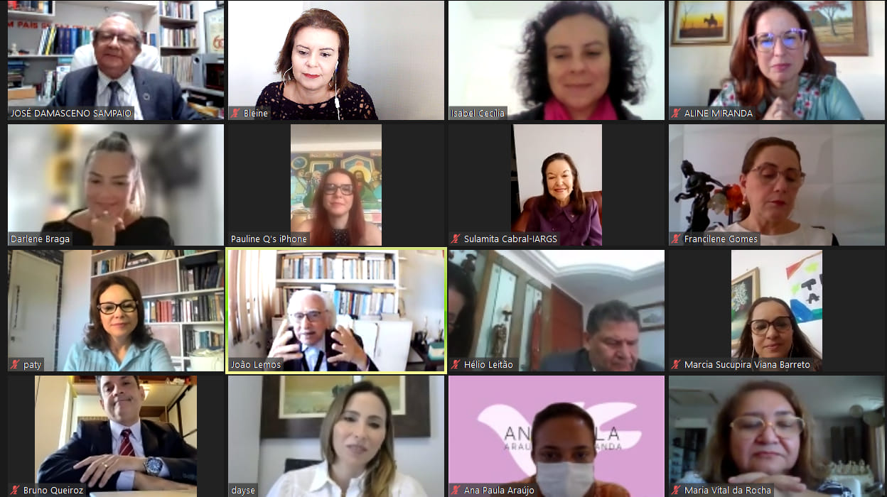 A presidente do IARGS, Dra Sulamita Santos Cabral, participou, no dia 03/07, da cerimônia virtual alusiva aos 90 anos de fundação do Instituto dos Advogados do Ceará (IAC), presidido pelo Dr João Gonçalves de Lemos, membro efetivo do IAB (Instituto dos Advogados Brasileiros) e detentor da Medalha Luiz Gama, com a qual o Instituto homenageia aqueles que se destacam na defesa do estado democrático de direito.