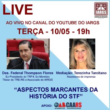 PRÓXIMAS LIVES Live com o Desembargador Federal Thompson Flores- Aspectos Marcantes da História do STF
