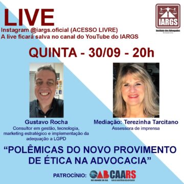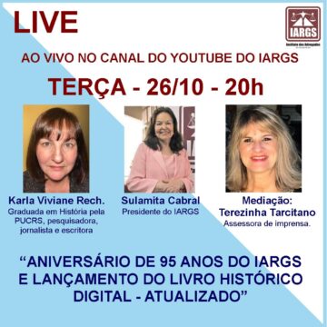 PRÓXIMAS LIVES Live especial- Aniversário de 95 anos do IARGS e lançamento do livro histórico digital
