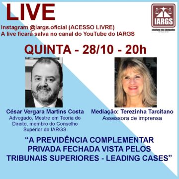 PRÓXIMAS LIVES Live com o Dr Cesar Vergara Martins Costa- A Previdência Complementar Privada Fechada vista pelos Tribunais Superiores