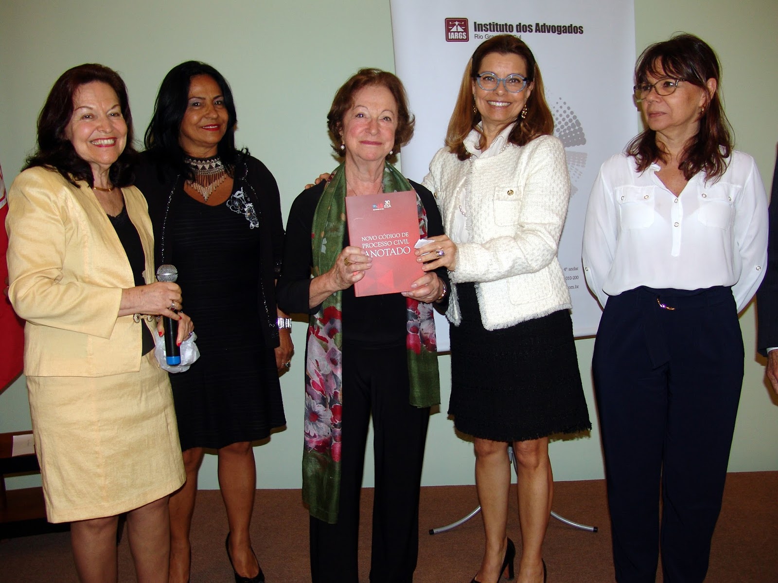 Como de praxe, a diretoria do IARGS junto com a presidente sorteou livros ao público presente: um do Dr Miguel Antônio Silveira Ramos (O Processo Eletrônico como uma Política Pública de Combate à Crise do Judiciário e os Obstáculos ao Acesso à Justiça), dois que foram doados por intermédio da Drª Rosângela Harzer, diretora geral da ESA (Novo Código de Processo Civil Anotado); e um do Dr Avelino Collet, vice-presidente do instituto (Um Homem, Uma Mulher).