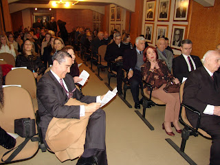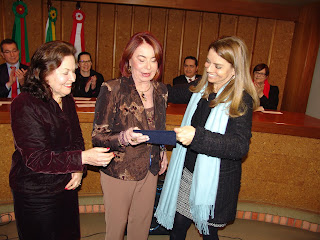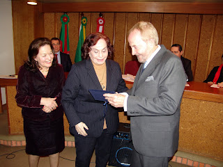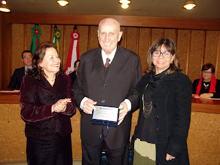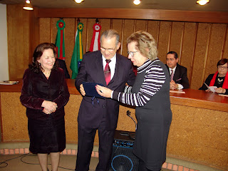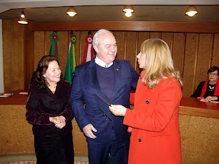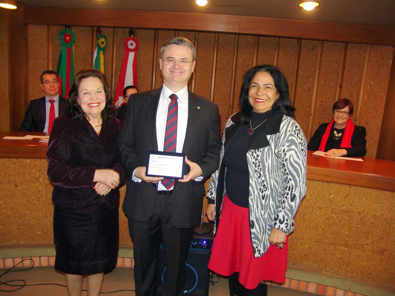 Em seguida, a diretora Ana Lucia Piccoli leu o tópico da ata da reunião de diretoria relativo à escolha dos homenageados e, logo depois, o vice-presidente, Avelino Collet, fez um discurso em deferência aos homenageados.