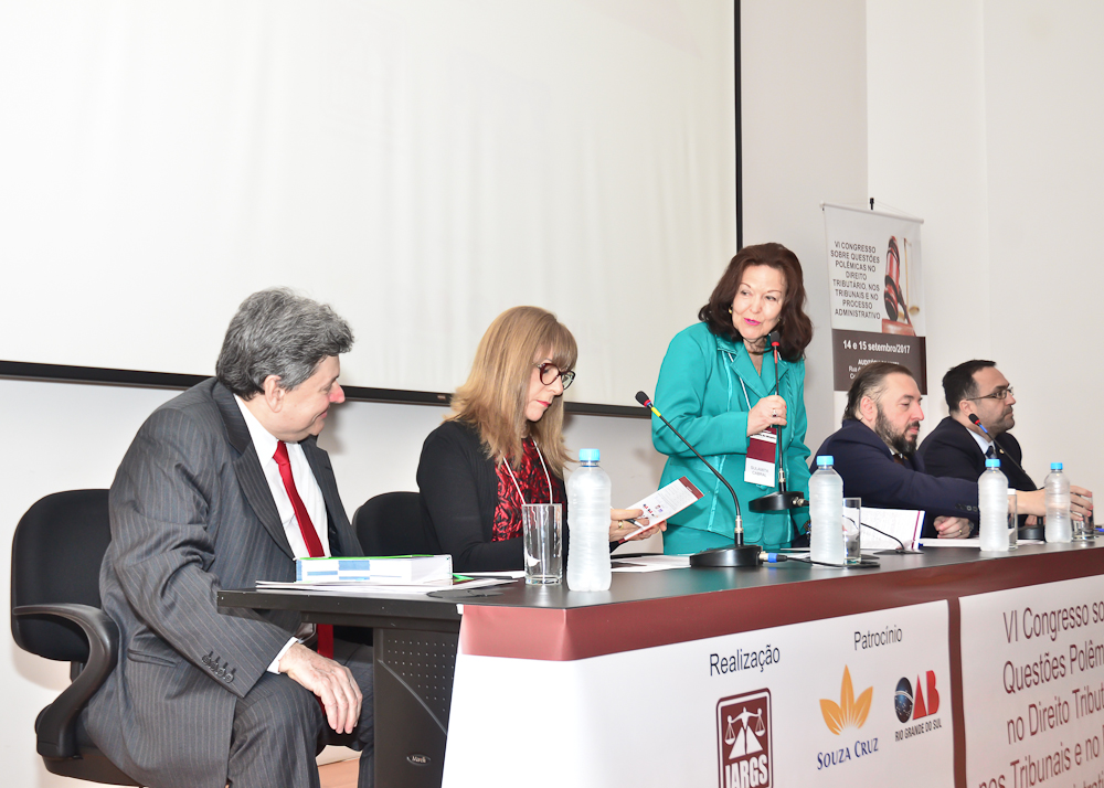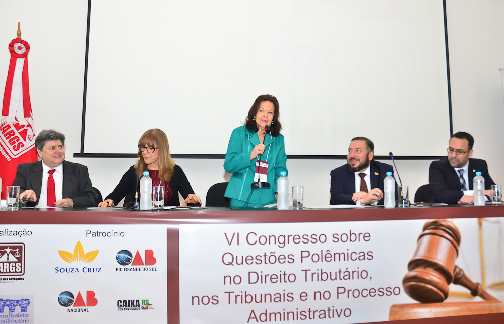 Em sua fala inicial, a Drª Alice Grecchi ressaltou que os resultados positivos alcançados das edições anteriores instigaram ela e sua equipe a continuação do congresso, com o especial apoio do IARGS, da ABDT e da Comissão Especial de Estudos de Direito Tributário da OAB/RS, presidida pelo Dr. Rafael Pandolfo. Explicou que buscou organizar, juntamente com os demais coordenadores, uma programação científica que pudesse harmonizar os temas teóricos e práticos, sendo, o jurista, o ponto de interseção entre a teoria e a prática, a ciência e a experiência. Na sua avaliação, a tributação está profundamente relacionada à realização dos ideais democráticos e, consequentemente, à liberdade dos cidadãos. Afirmou que o “devido processo legal assume papel fundamental tanto na defesa do contribuinte, como instrumento do Estado na busca da efetividade do crédito tributário”. Acentuou que, partindo de tais pressupostos e, sobretudo, do papel da tributação como instrumento de realização de um Brasil melhor e mais justo, o congresso foi idealizado, debatendo as questões polêmicas, as quais preocupam tanto o contribuinte quanto o Fisco.
