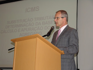 Em seguida, o secretário-adjunto da Fazenda do RS, o Dr Luiz Antônio Bins, palestrou sobre “Determinação da base de cálculo do ICMS – substituição tributária e apuração do valor agregado”, afirmando se tratar de instrumento da administração tributária e regulador de mercado. Ele relatou a importância na arrecadação de ICMS, que significa 28% de todo o país. Explicou sobre o conceito e exemplos da Substituição Tributária Progressiva e Regressiva, observando a existência de uma relação triangular entre o Estado, substituído e substituto.