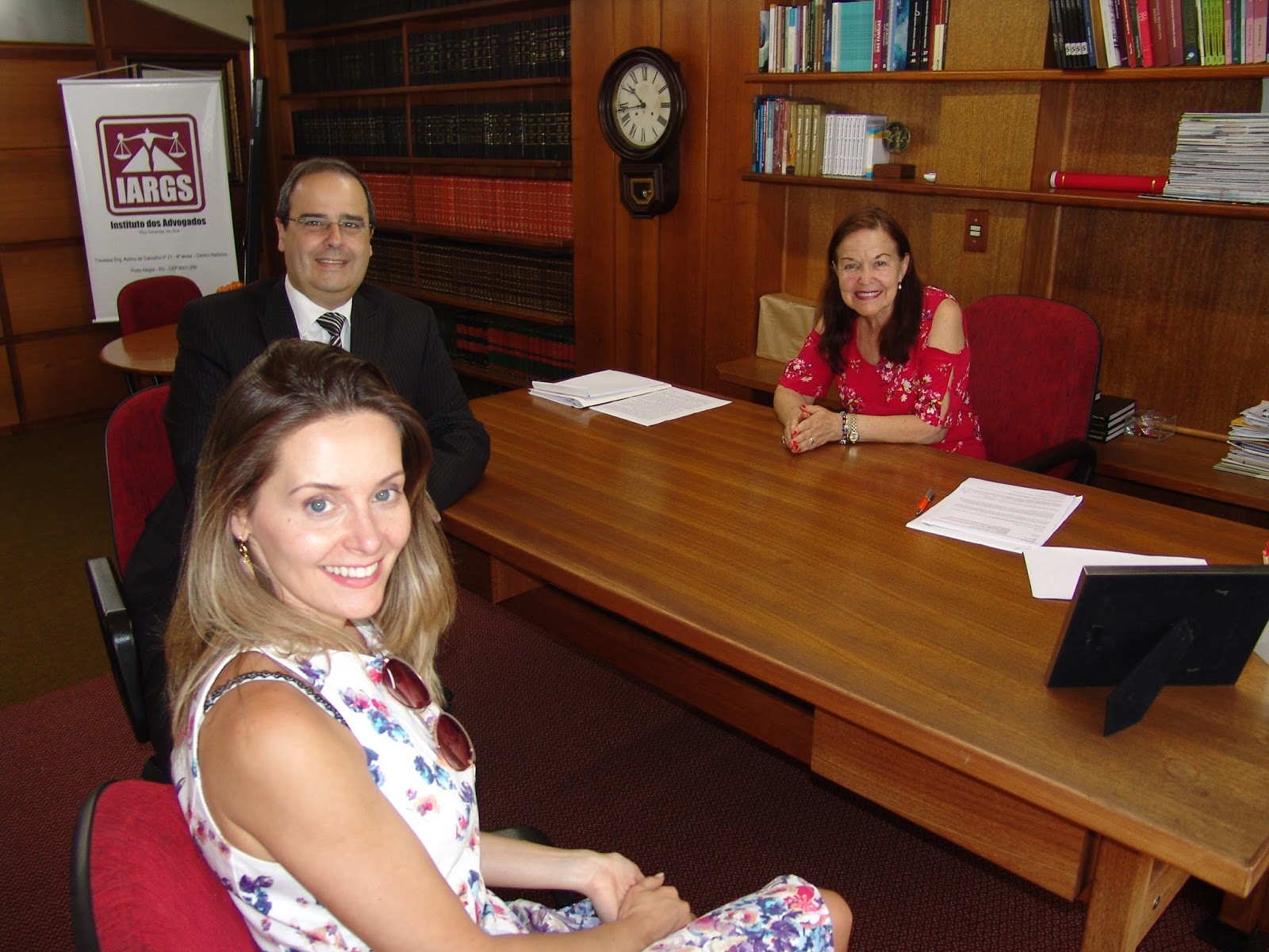 A advogada Kalin Rodrigues e o coordenador do Mestrado em Direito da FMU (Faculdades Metropolitanas Unidas), Roberto Senise Lisboa, fizeram uma visita de cortesia ao IARGS, em 30/01, e foram recebidos pela presidente do instituto, Sulamita Santos Cabral. Conversaram sobre possibilidades de futuras parcerias em projetos da área jurídica.