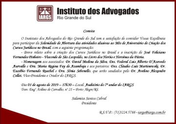 Em comemoração ao aniversário de criação dos cursos jurídicos no Brasil, o Instituto dos Advogados do RS (IARGS) promoverá uma série de atividades ao longo